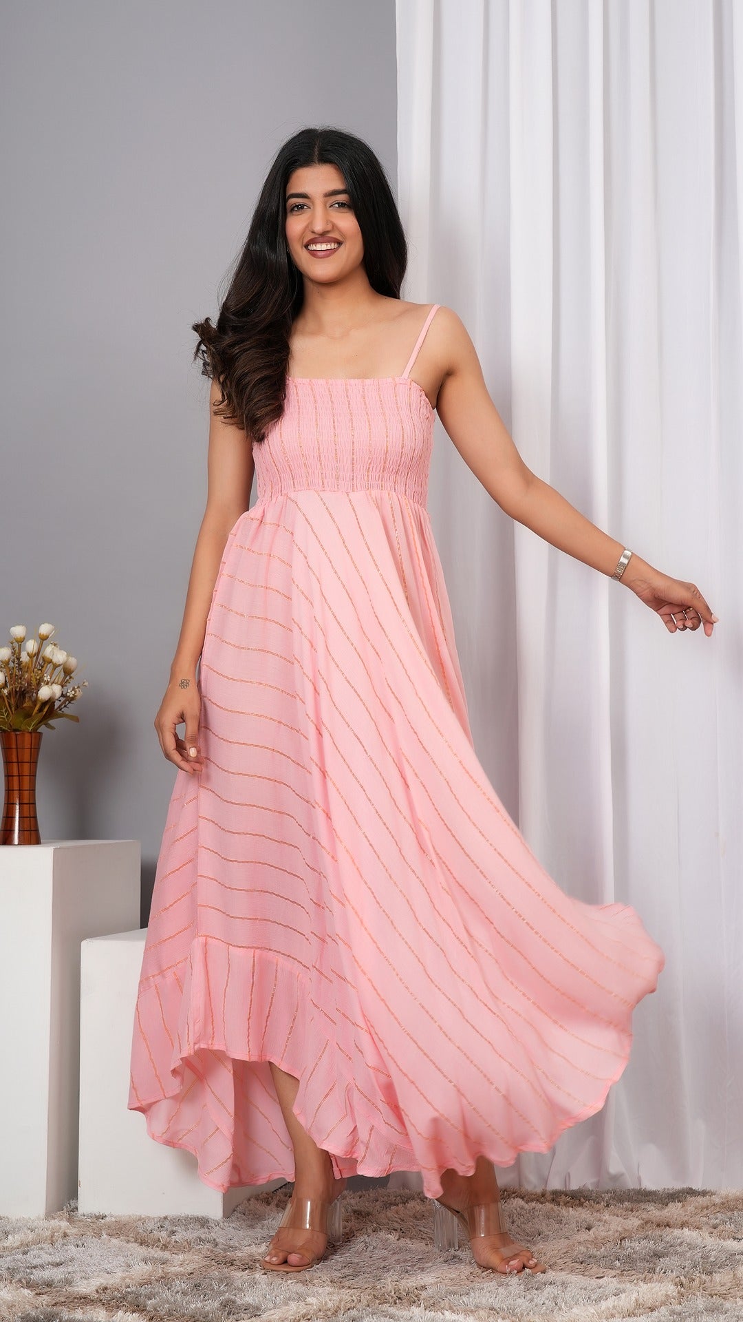 IQRAAR Women Lurex Rayon Fit & Flared Western Wear Dress (Baby Pink)