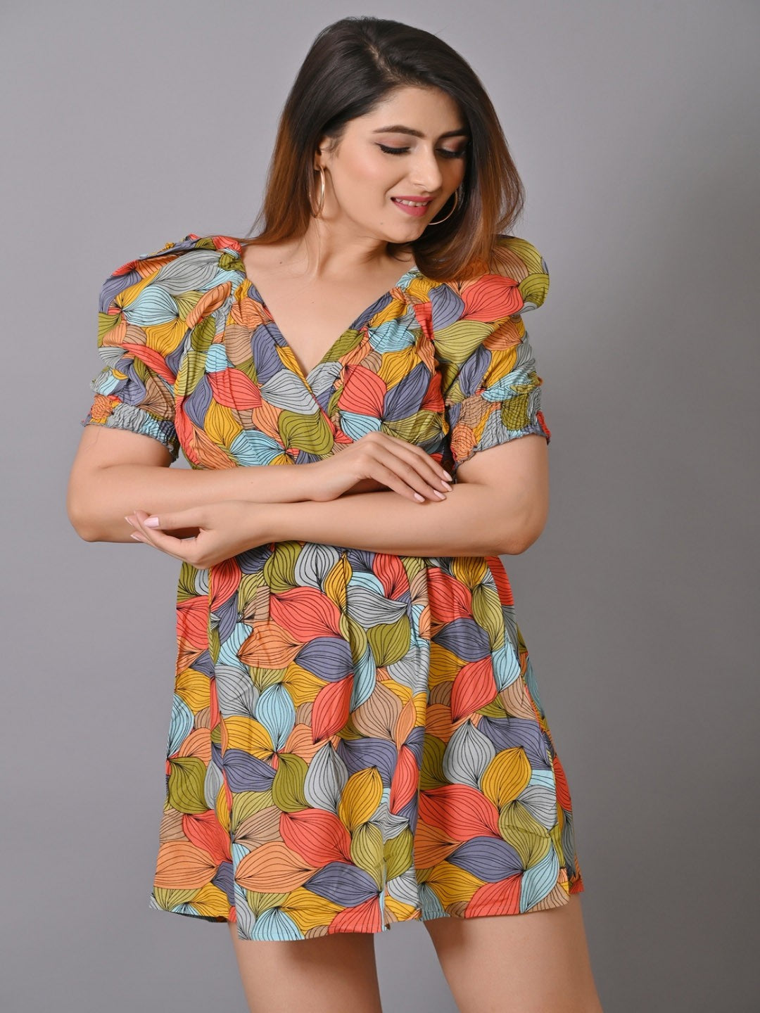 This lovely Green Floral Dress features a beautiful green floral print and a flattering fit & flare silhouette. The V-neckline and short, puff sleeves add a touch of femininity, while the above knee length and flared hem create a playful and flirty look. Made with a comfortable and easy-to-care-for material, this dress is perfect for any occasion. Available in sizes S-XL.