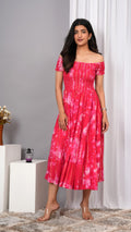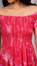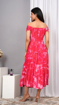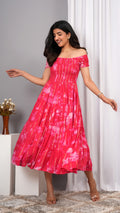 Iqraar Women Tie and Dye Dyed Smocked Off-Shoulder Fit and Flare Midi Dress