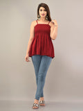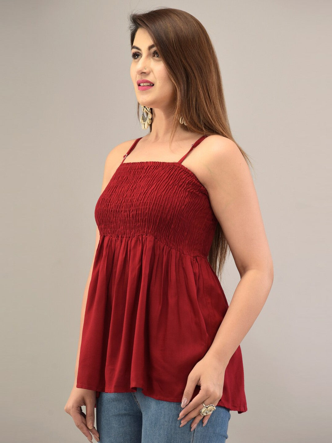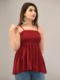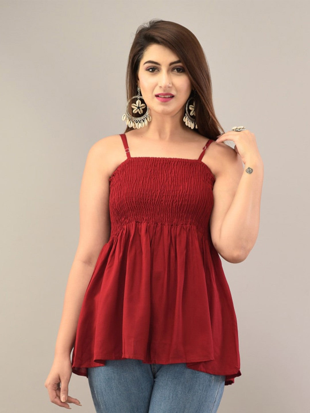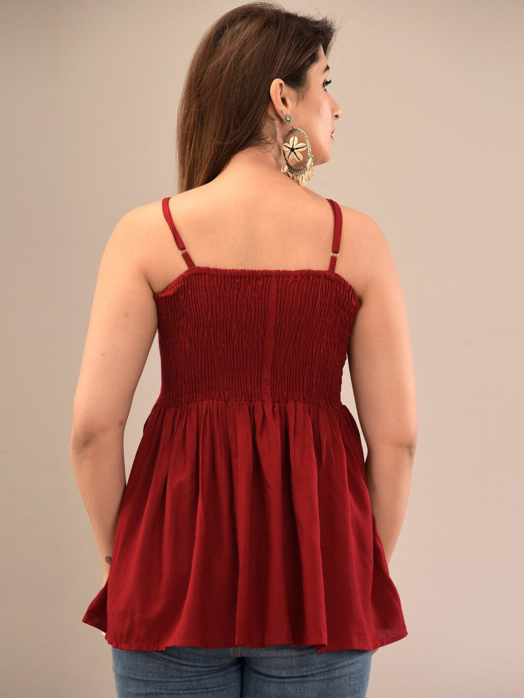 The Maroon Empire Top is a must-have addition to your wardrobe. This solid top features a flattering empire waist design and comfortable shoulder straps with regular sleeves. Crafted from a high-quality woven material, it is comfortable and stylish. Available in sizes S-L and easy to care for with hand washing.