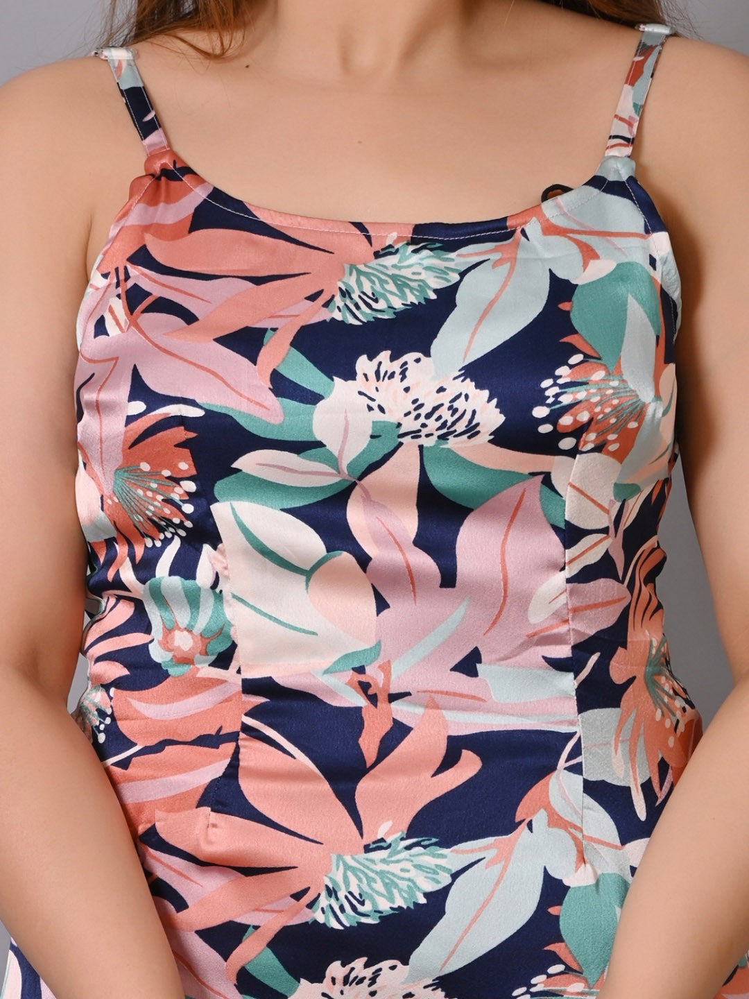 Elevate your style with this multicoloured and lilac ash floral print sheath dress. The shoulder straps offer a comfortable and secure fit, while the sleeveless design and above knee length provide a chic and flattering look. Made from machine washable material for easy care. Available in sizes S-L.