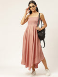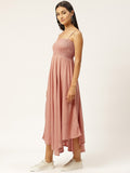 Orange Smocked Midi Dress