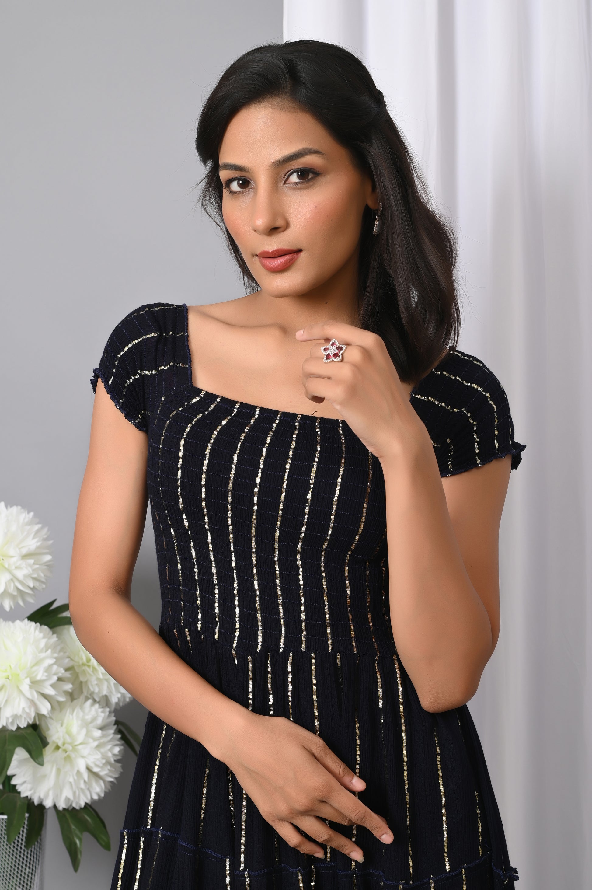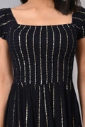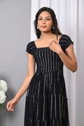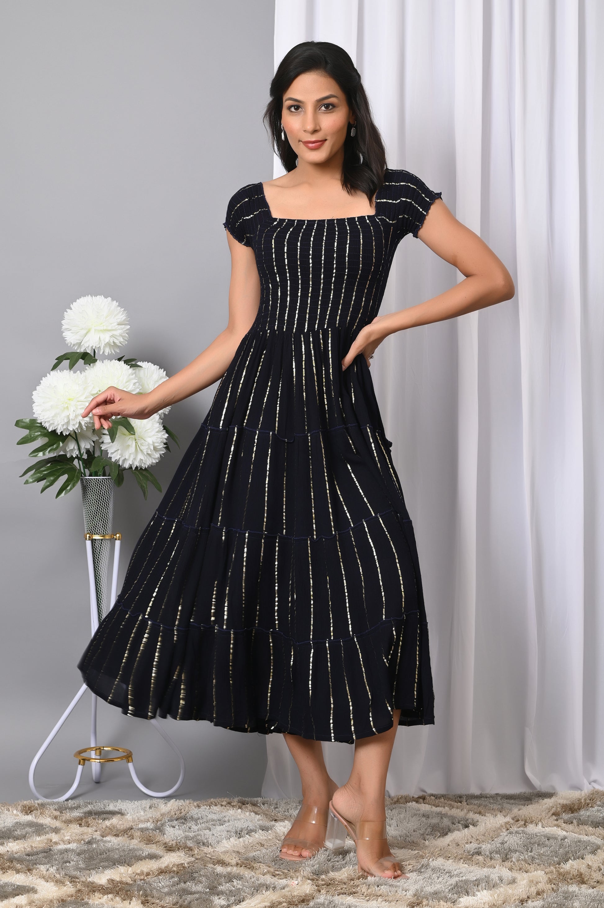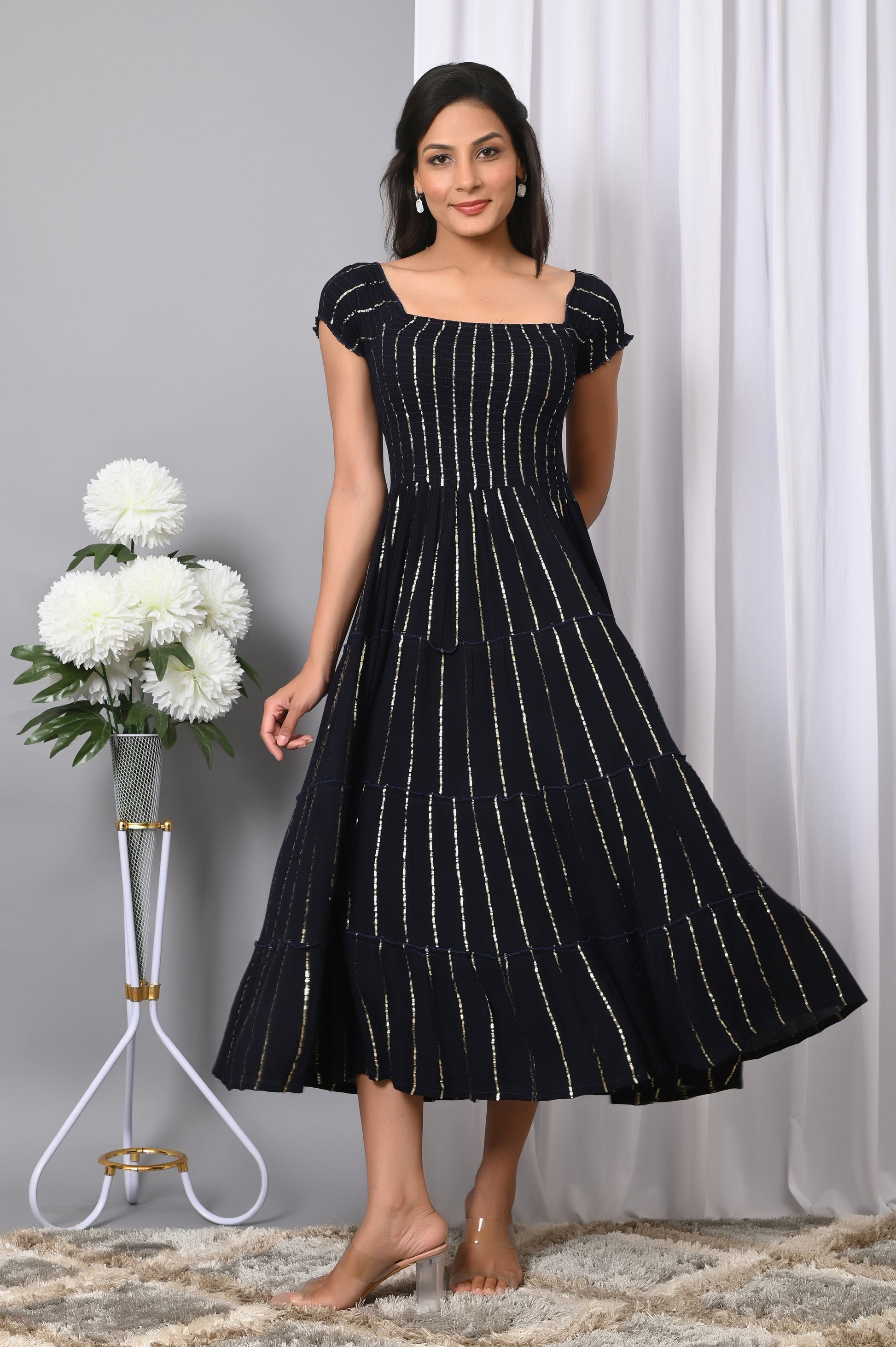 IQRAAR Women Rayon Square Neck Fit & Flared Western Wear Dress