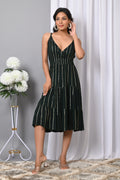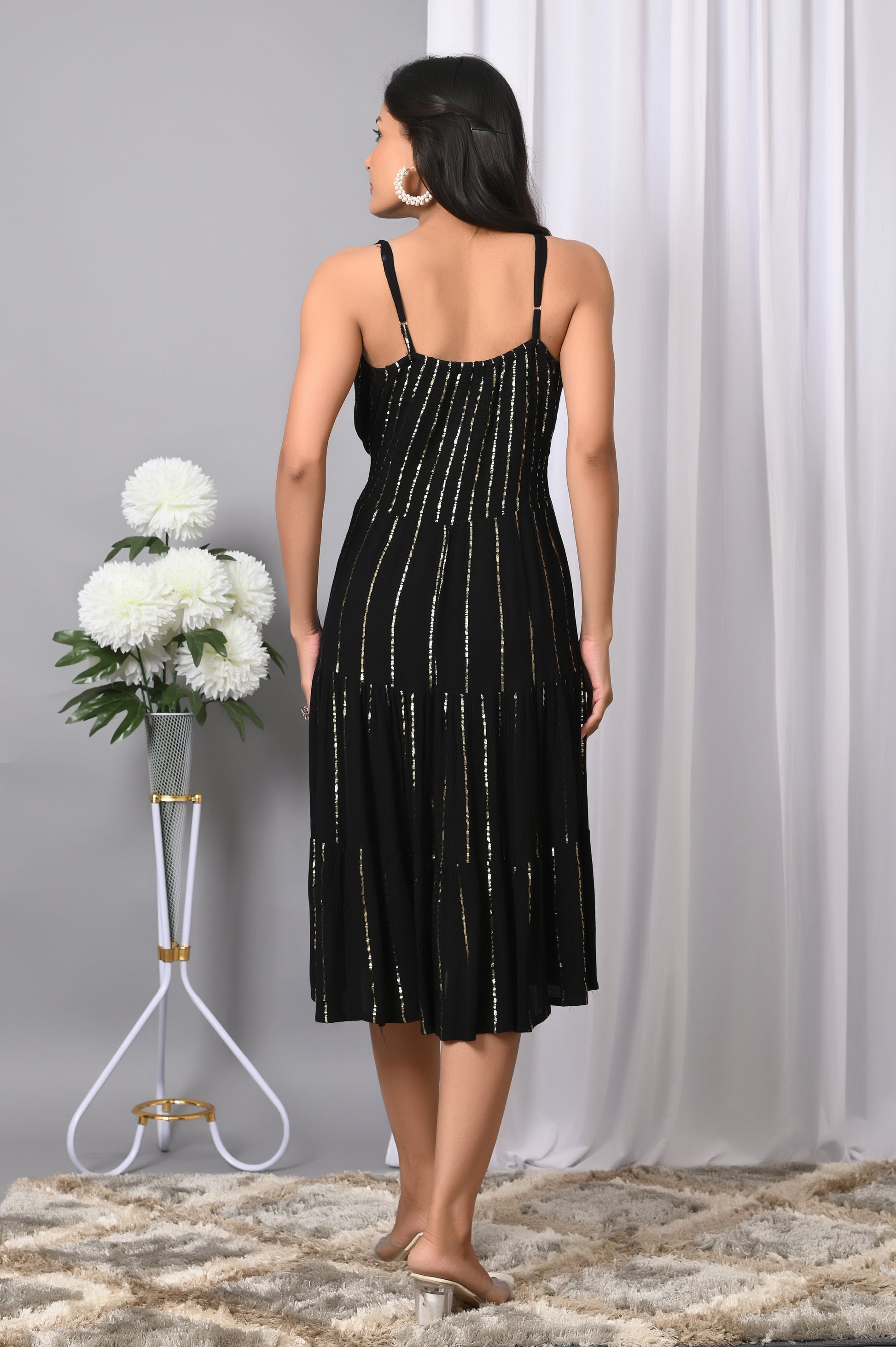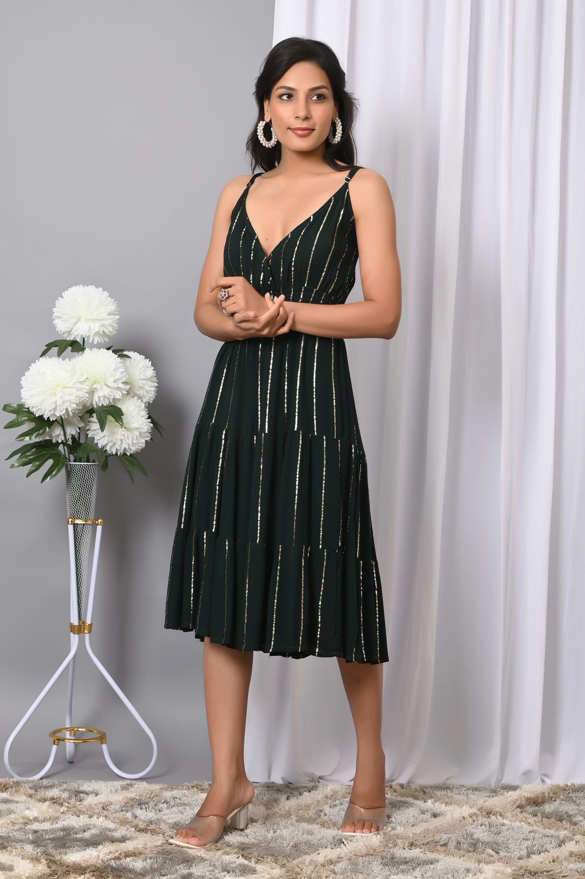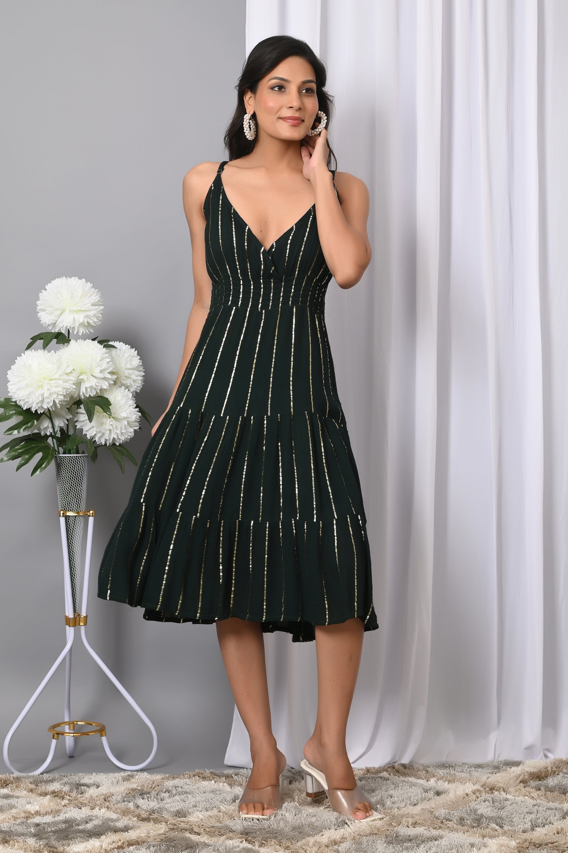 IQRAAR Women Rayon V Neck Fit & Flared Western Wear Dress