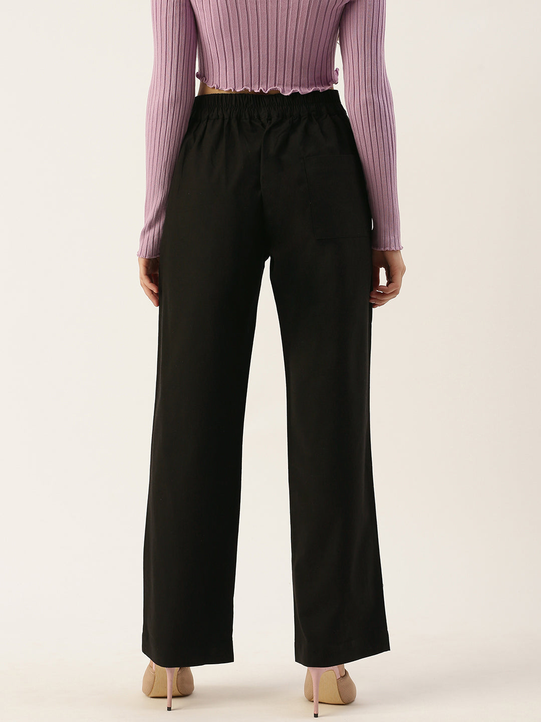 The trouser features a straight fit and a solid design, making it a timeless and versatile piece for your wardrobe. It comes with an elasticated waistband for added comfort and practicality and includes three convenient pockets for all your essentials.